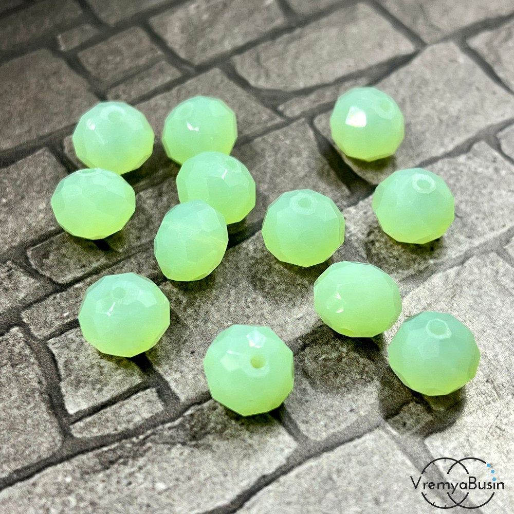 Бусины рондели из граненого стекла, 8х10 мм, цв. САЛАТОВЫЙ ПОЛУМАТОВЫЙ (1 шт.)