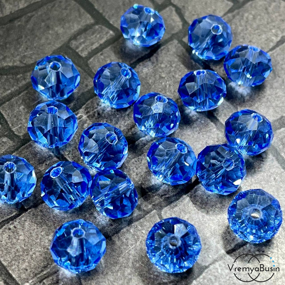 • Бусины рондели из граненого стекла, 8х10 мм, цв.  ГОЛУБОЙ (1 шт.)