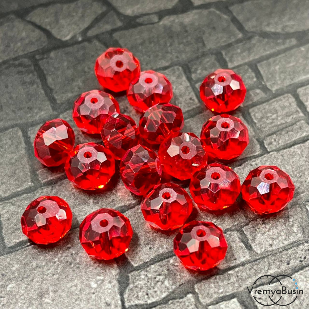 Бусины рондели из граненого стекла, 8х10 мм, цв. КРАСНЫЙ (1 шт.)