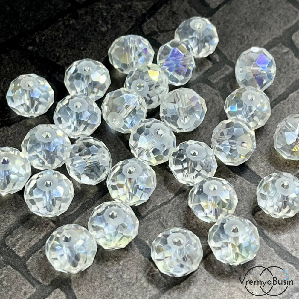 • Бусины рондели из граненого стекла, 8х10 мм, цв.  ПРОЗРАЧНЫЙ С АБ ПЕРЕЛИВОМ (1 шт.)