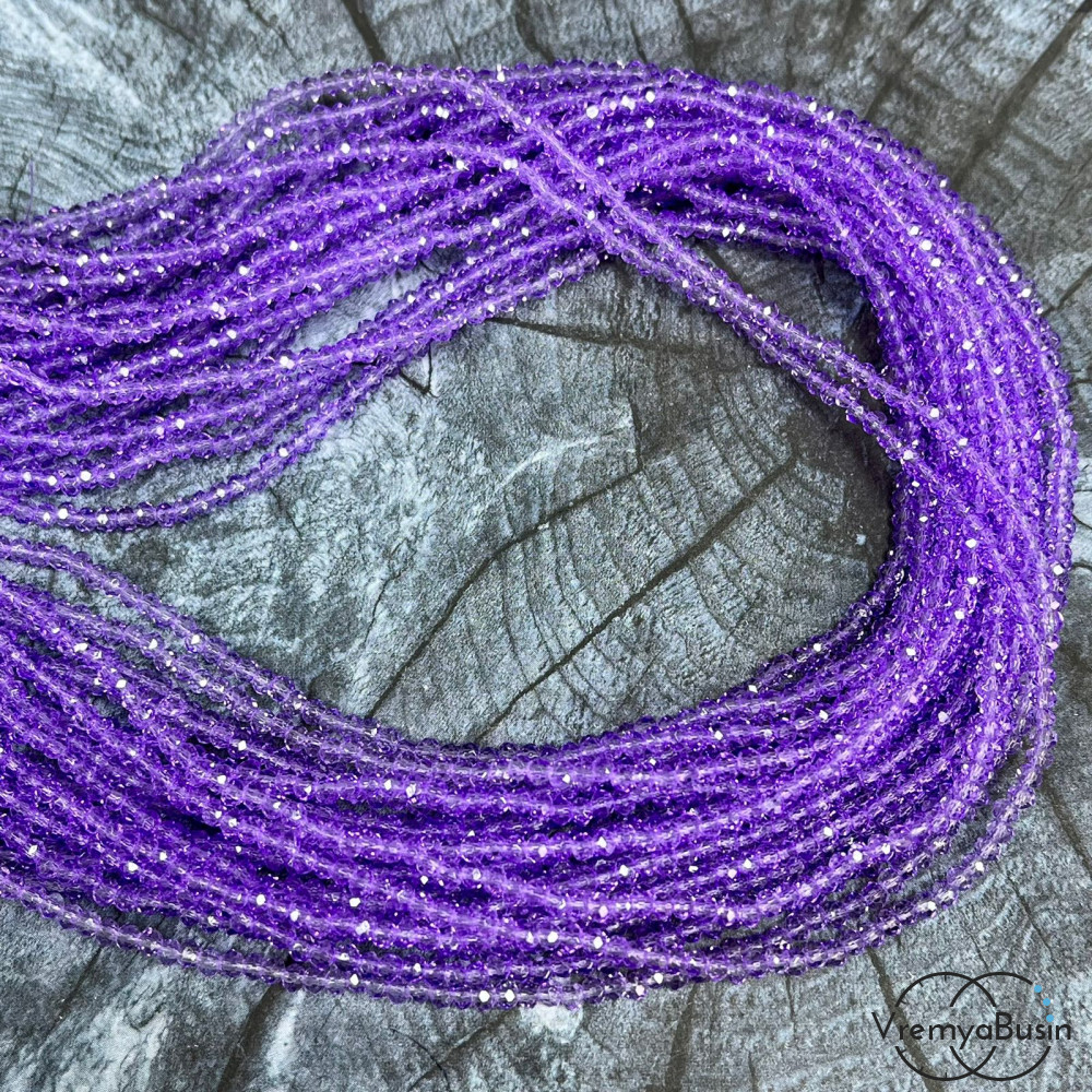 Бусина рондель из граненого стекла 2х3 мм (нить 130 шт.) СИРЕНЕВЫЙ