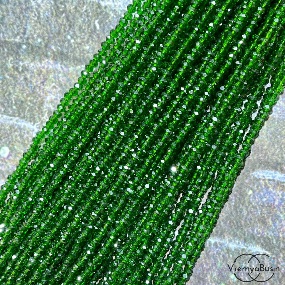 Бусина рондель из граненого стекла 2х3 мм (нить 130 шт.) ТЕМНО-ЗЕЛЕНЫЙ