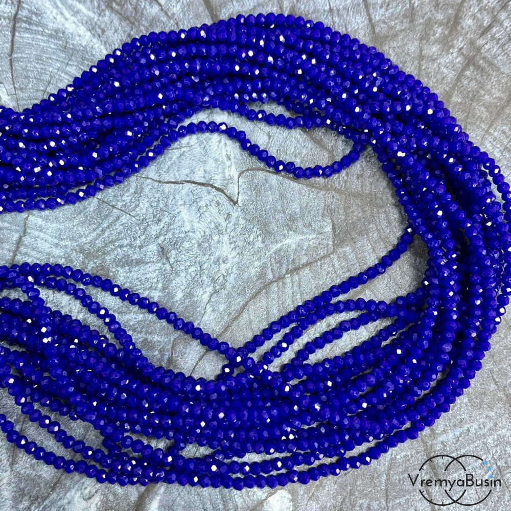 Бусина рондель из граненого стекла 2х3 мм (нить 130 шт.) СИНИЙ МАТОВЫЙ