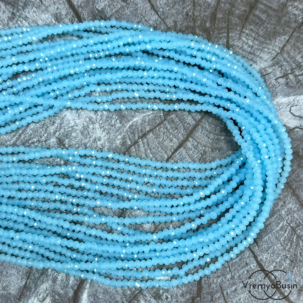 Бусина рондель из граненого стекла 2х3 мм (нить 130 шт.) БИРЮЗОВЫЙ ПОЛУМАТОВЫЙ
