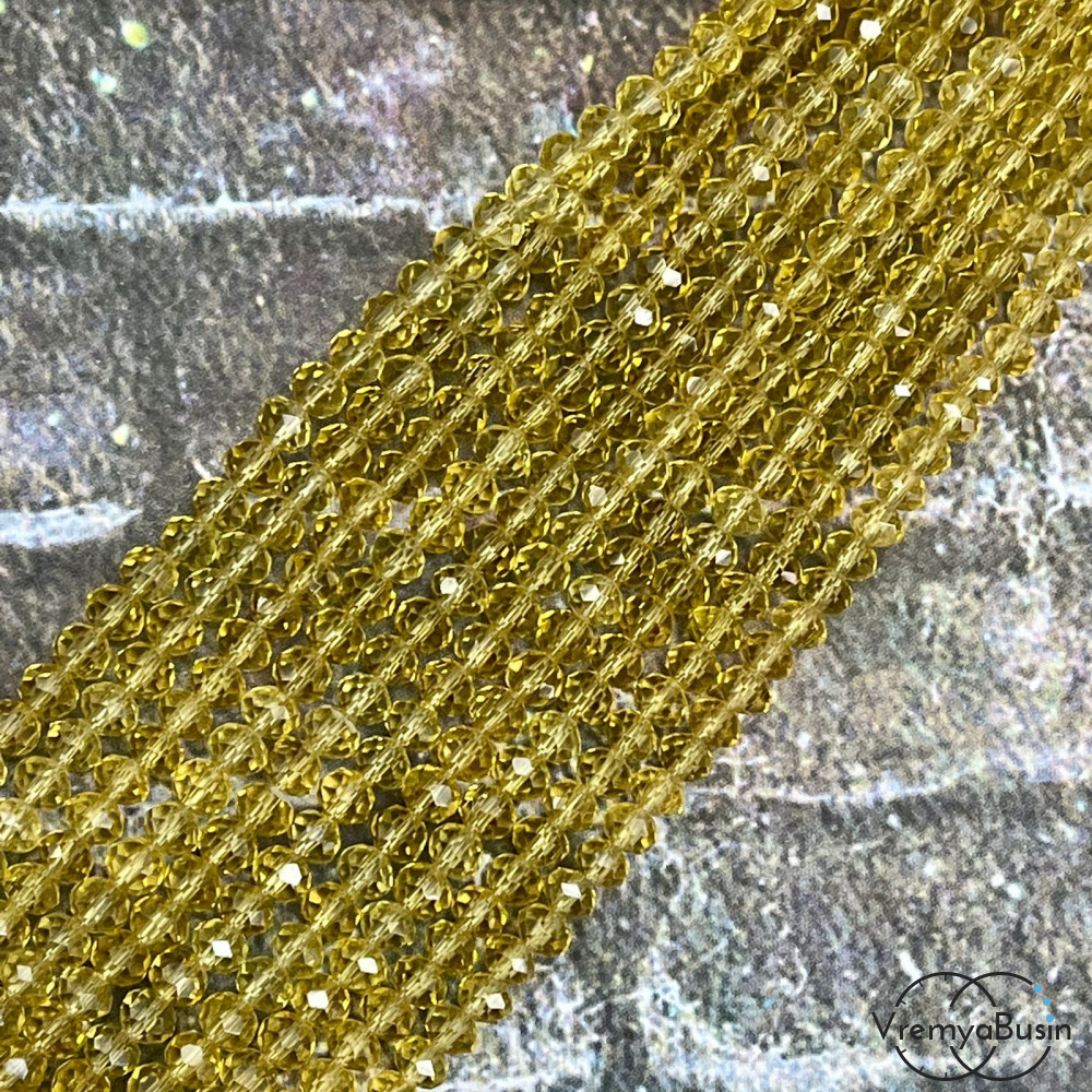 Бусины-рондели из граненого стекла, 3х4 мм, цв. медовый (нить, ок. 130 шт.)