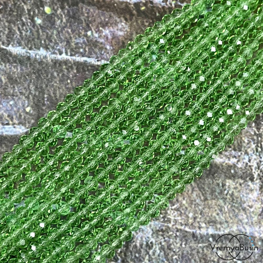 Бусины-рондели из граненого стекла, 3х4 мм, цв. салатовый (нить, ок. 130 шт.)