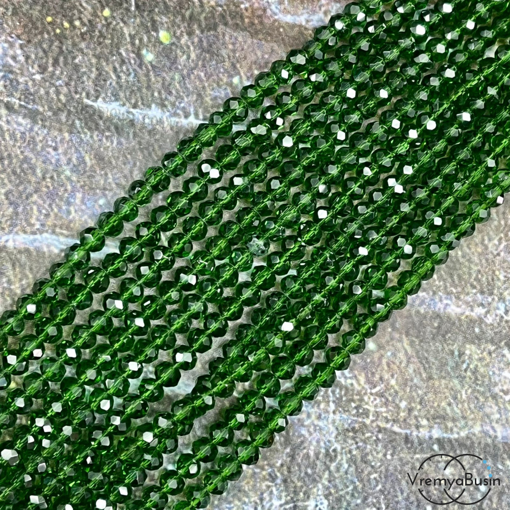 Бусины-рондели из граненого стекла, 3х4 мм, цв. темно-зеленый (нить, ок. 130 шт.)