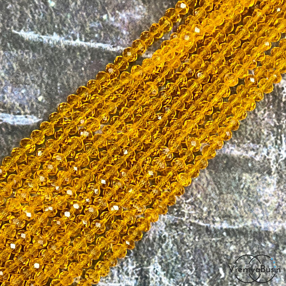 Бусины-рондели из граненого стекла, 3х4 мм, цв. оранжевый (нить, ок. 130 шт.)