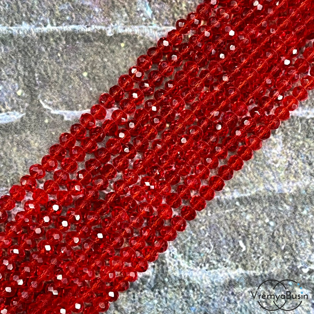 • Бусины-рондели из граненого стекла, 3х4 мм, цв. красный (нить, ок. 130 шт.)