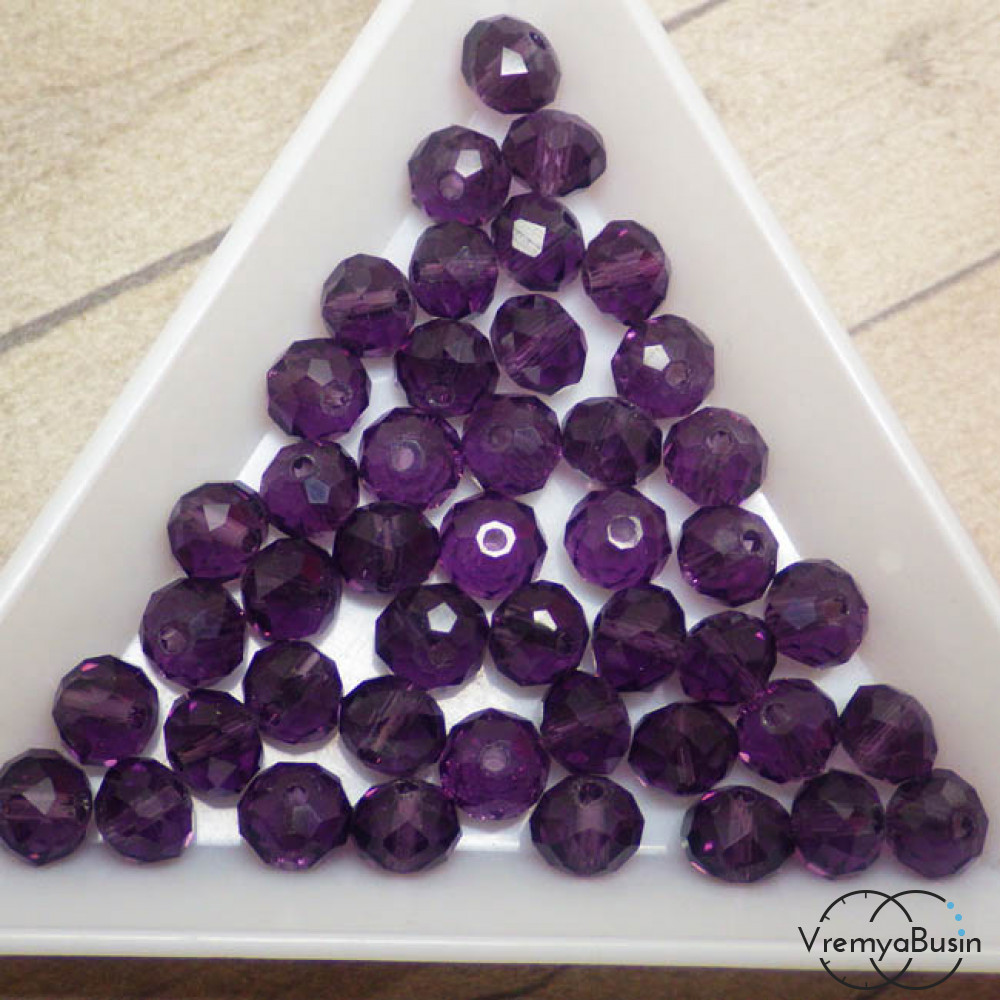 Бусины-рондели из граненого стекла, цвет ФИОЛЕТОВЫЙ, размер 6 мм (упак. 10 шт.)