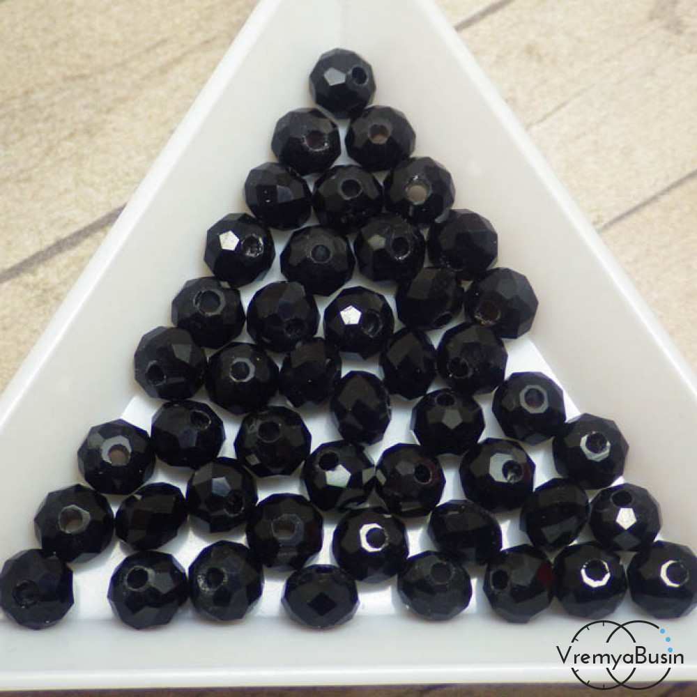 Бусины-рондели из граненого стекла, цвет ЧЕРНЫЙ, размер 6 мм (упак. 10 шт.)