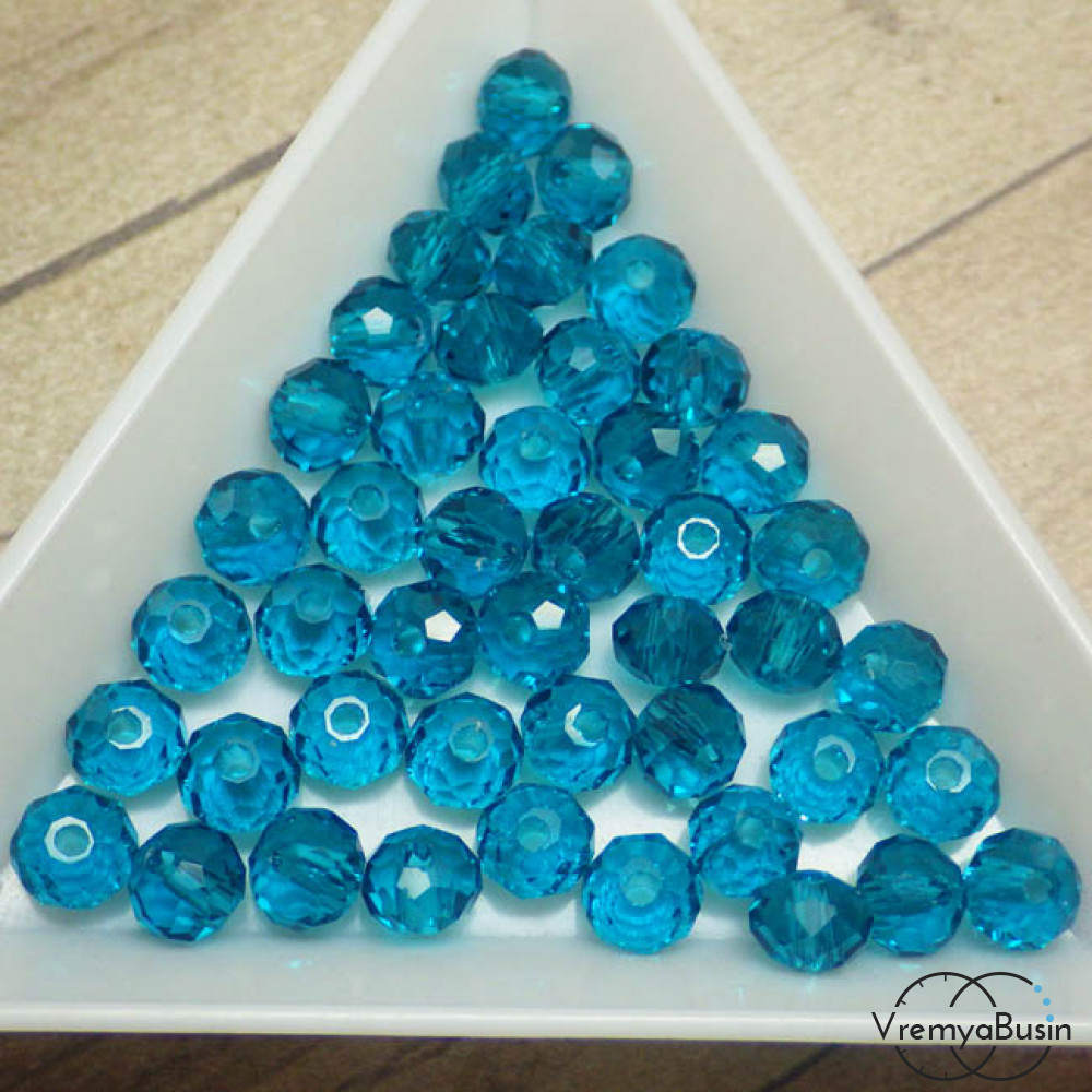 • Бусины-рондели из граненого стекла, цвет ТЕМНО-БИРЮЗОВЫЙ, размер 6 мм  (упак. 10 шт.)