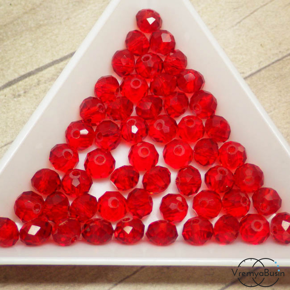 Бусины-рондели из граненого стекла, цвет КРАСНЫЙ, размер 6 мм (упак. 10 шт.)