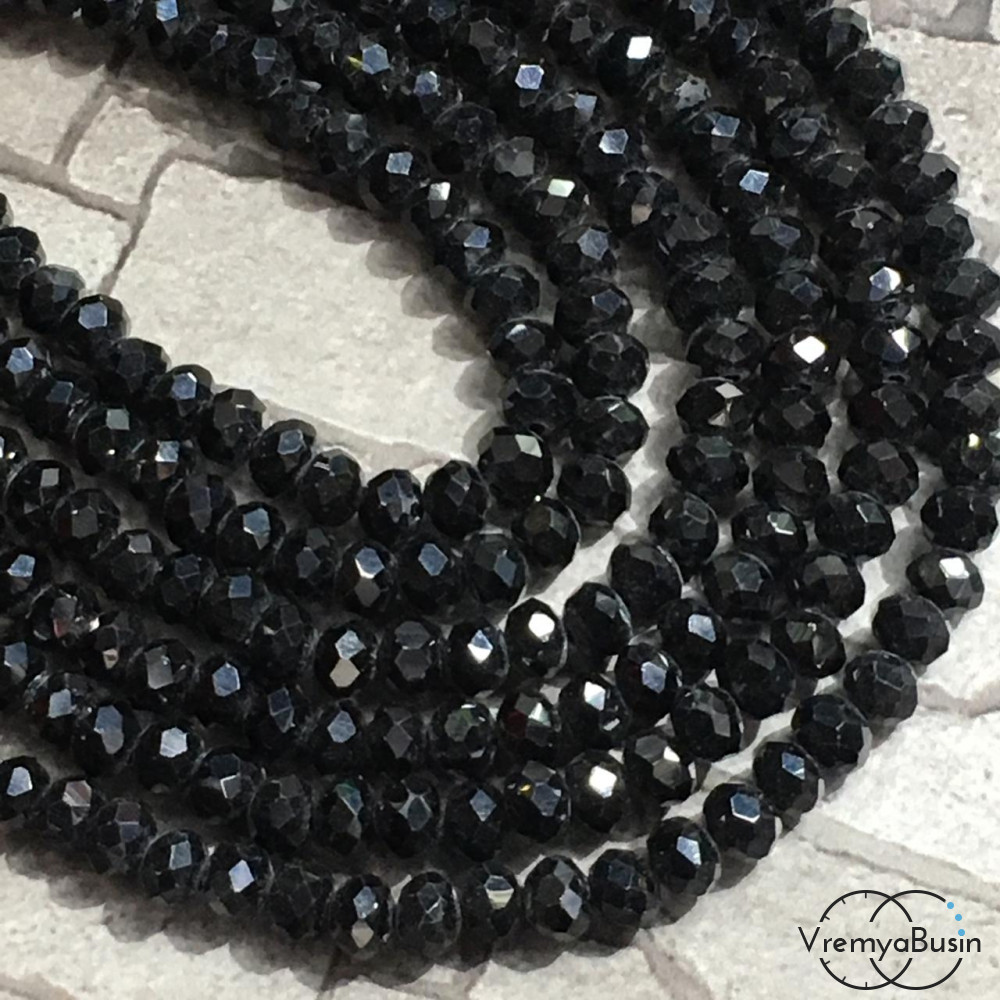 • Бусины-рондели из граненого стекла, цв. Чёрный, размер 6 мм  (нить, ок. 85  шт.)
