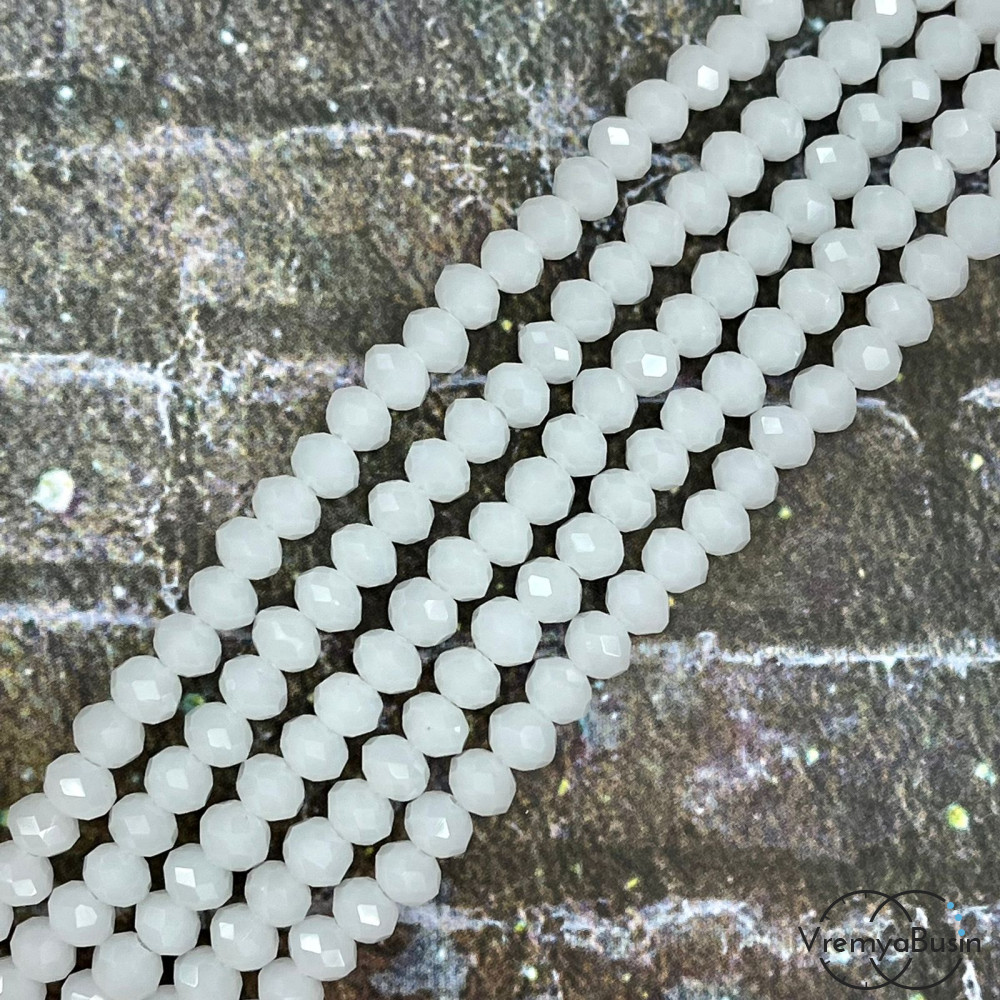 Бусины-рондели из граненого стекла, цв. матовый белый, 6 мм (нить, ок. 85 шт.)