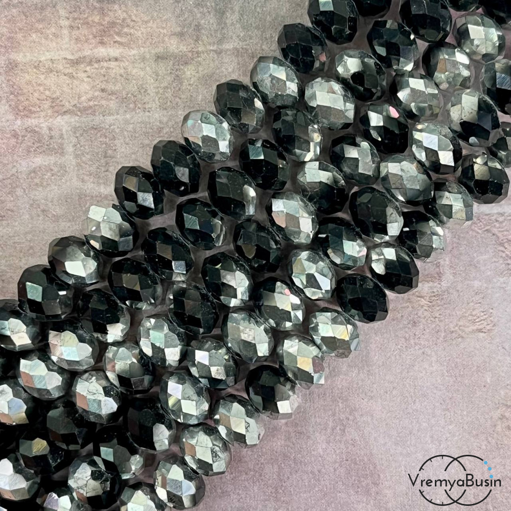 Бусины-рондели из граненого стекла, цв. черно-серебряный, размер 8 мм (нить, ок. 65 шт.)