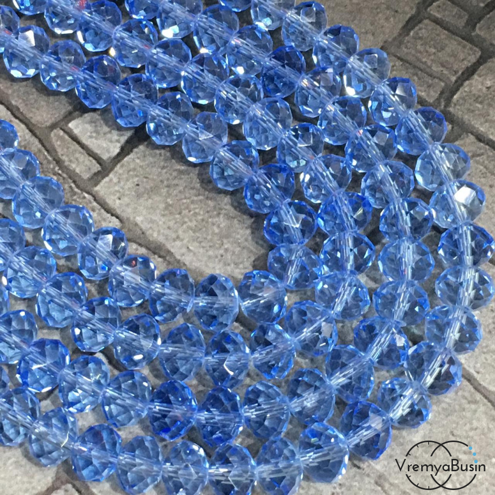 • Бусины-рондели из граненого стекла, цв. Голубой, размер 8 мм  (нить, ок. 65  шт.)