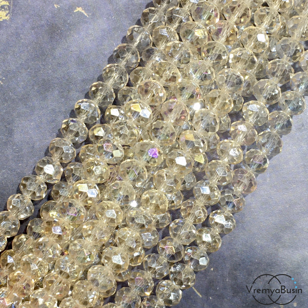 Бусины-рондели из граненого стекла, цв. шампанское с переливом , размер 8 мм (нить, ок. 65 шт.)