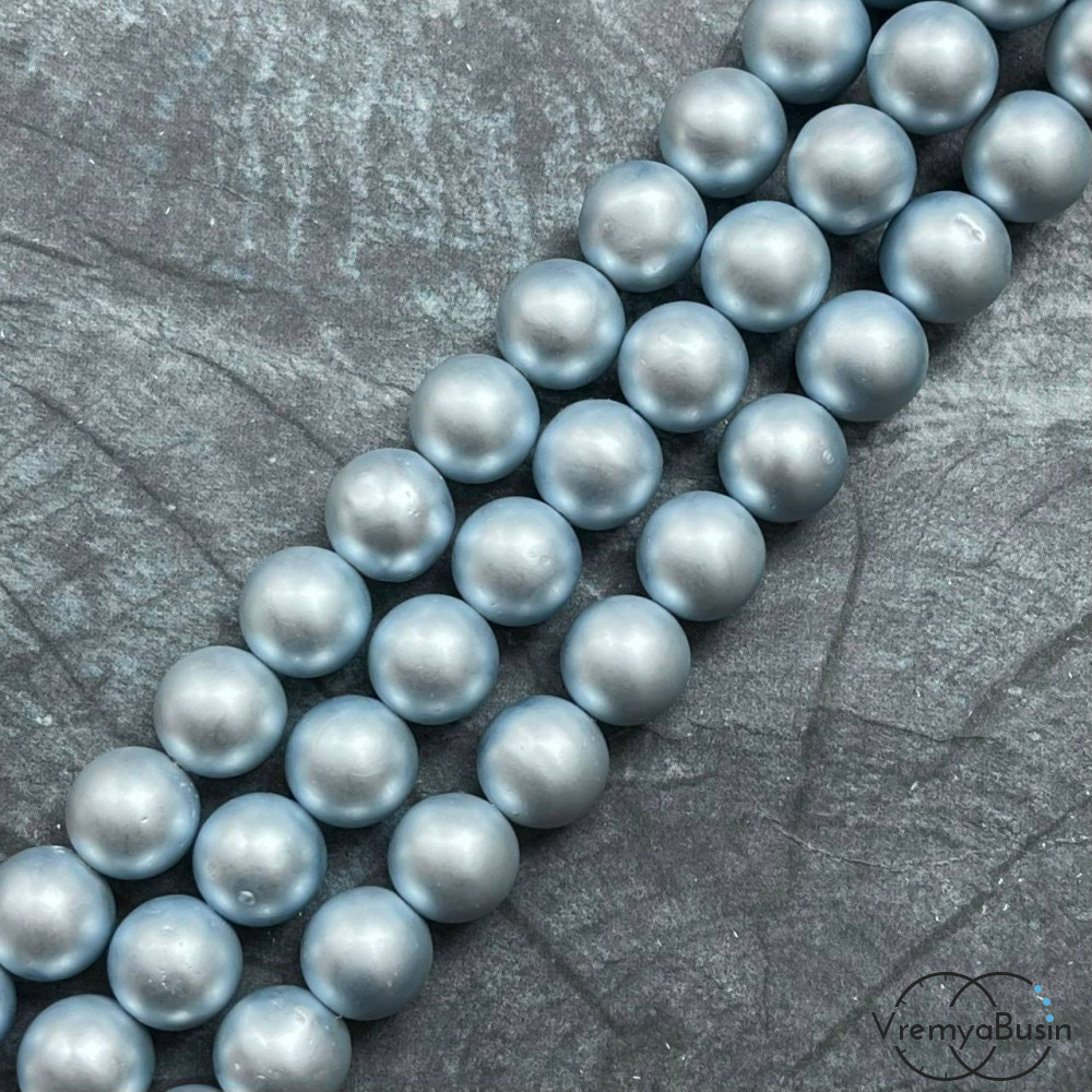Матовый жемчуг майорка, цв. голубой, шарик гладкий 10 мм (1/2 нити, ок. 19 шт.)