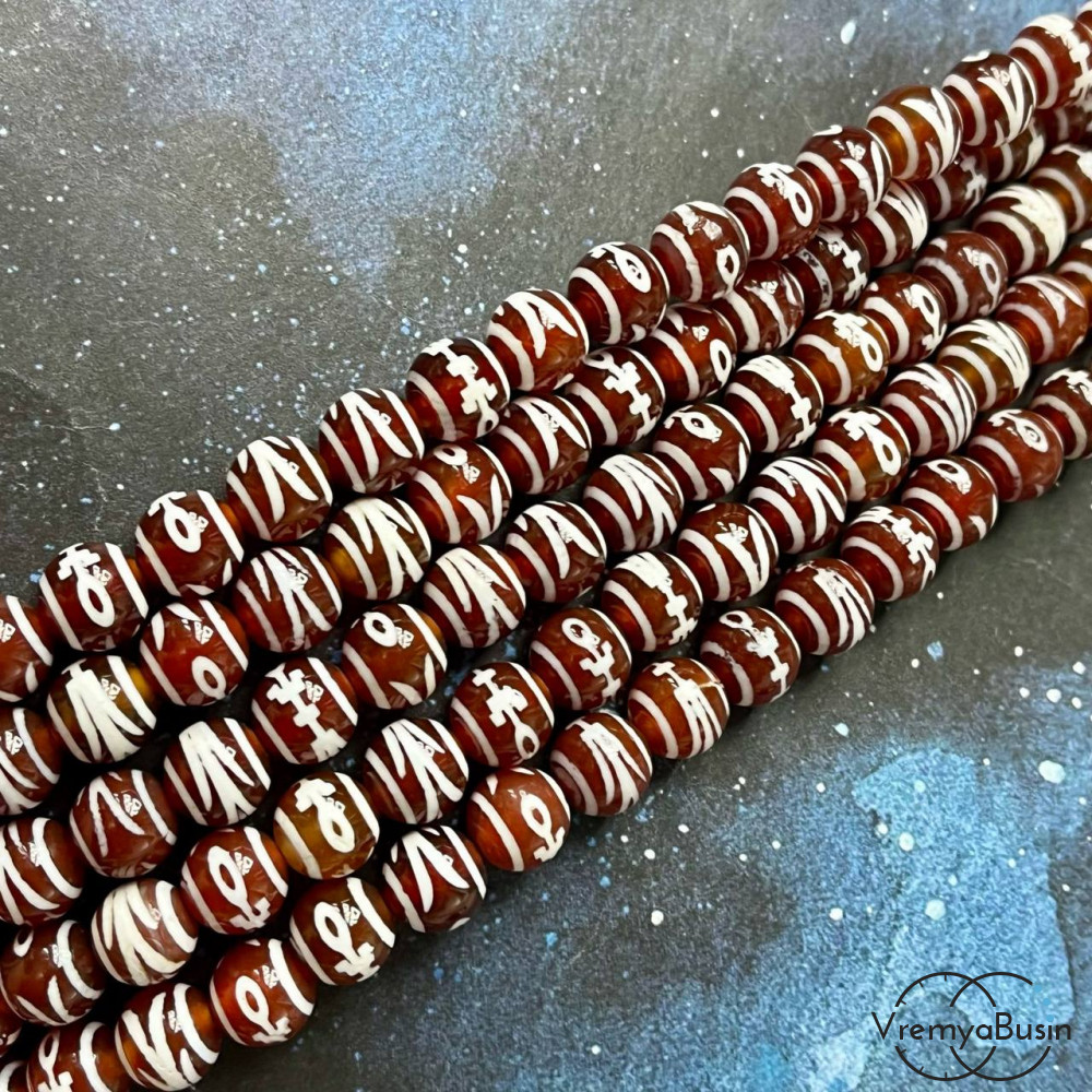 Бусины дзи из сердолика "Аристократ", шарик гладкий 8 мм (1/2 нити, ок. 24 шт.)