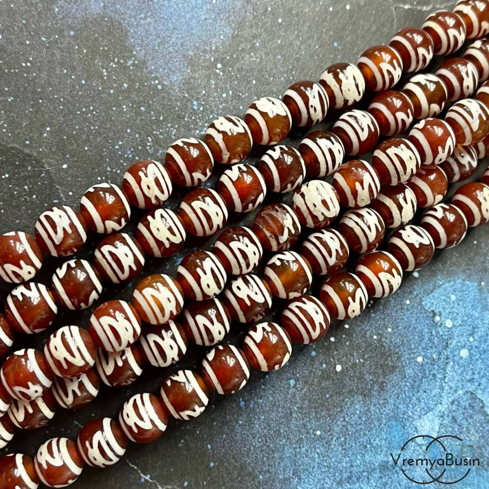 Бусины дзи из сердолика "Кубера", шарик гладкий 8 мм (1/2 нити, ок. 24 шт.)