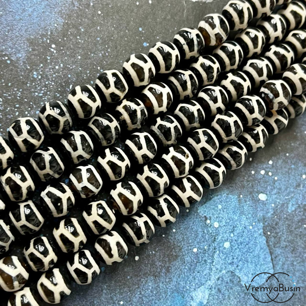 Бусины дзи из агата "Черепаха", шарик гладкий 8 мм (1/2 нити, ок. 24 шт.)