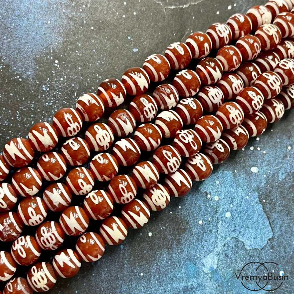• Бусины дзи из сердолика "Молния и мистический узел", шарик гладкий 8 мм (1/2 нити, ок. 24 шт.)