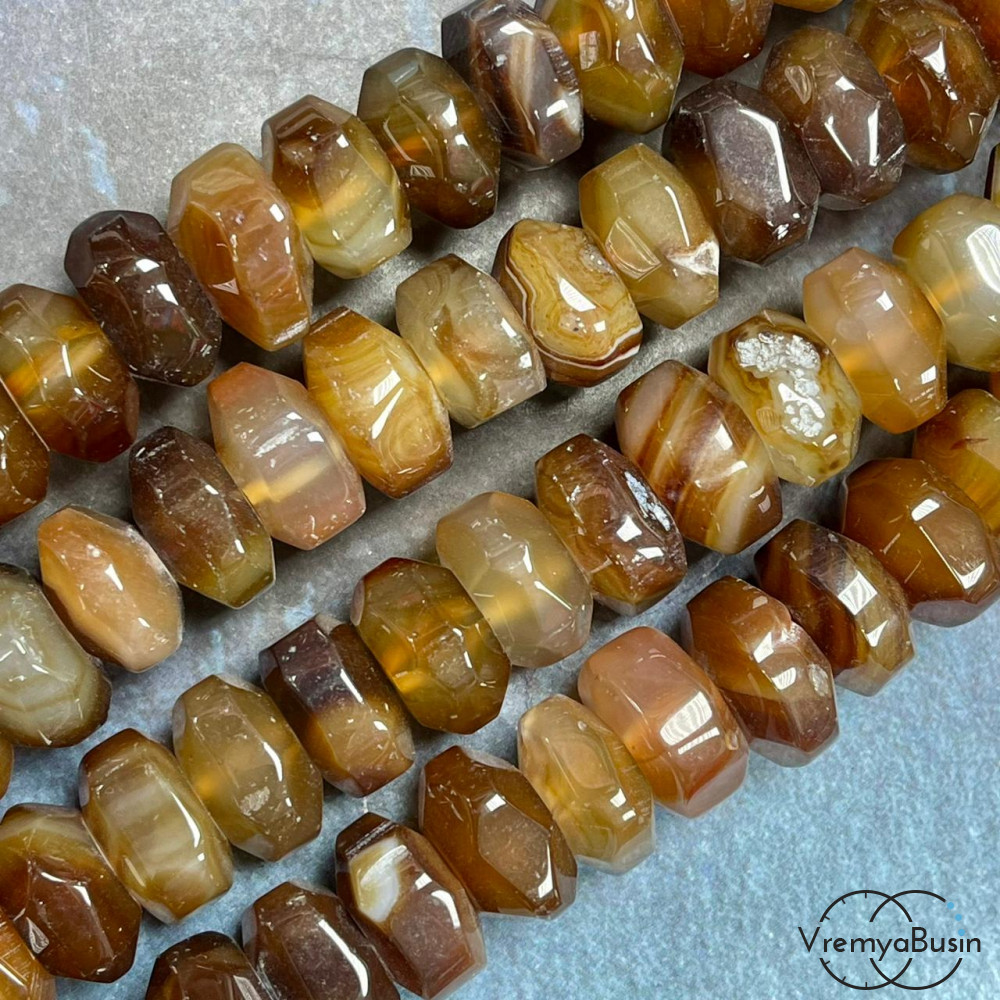 Агат тонир., крупный рондель с гранями, ок. 9х15 (1/2 нити, ок. 20 шт.)