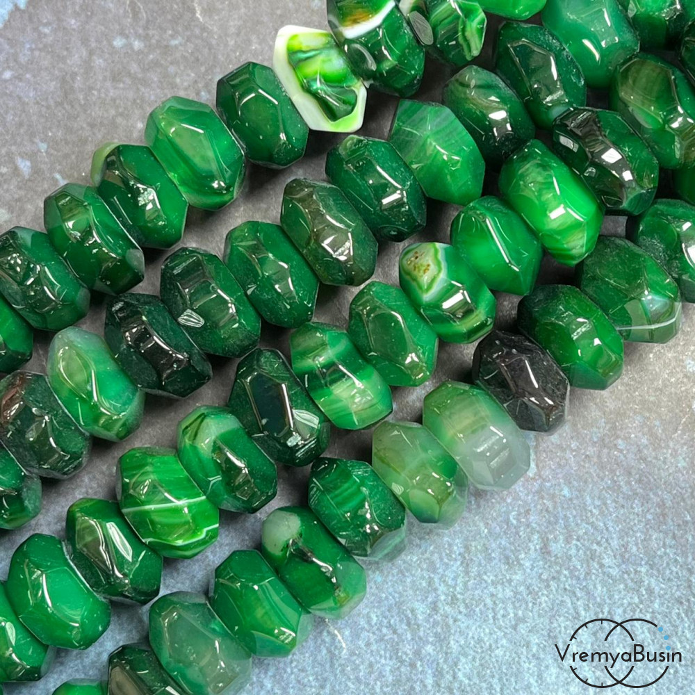 Агат тонир., крупный рондель с гранями, ок. 9х15 (1/2 нити, ок. 20 шт.)