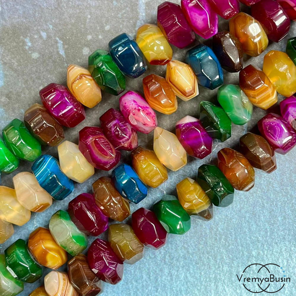 Агат тонир., крупный рондель с гранями, ок. 9х15 (1/2 нити, ок. 20 шт.)