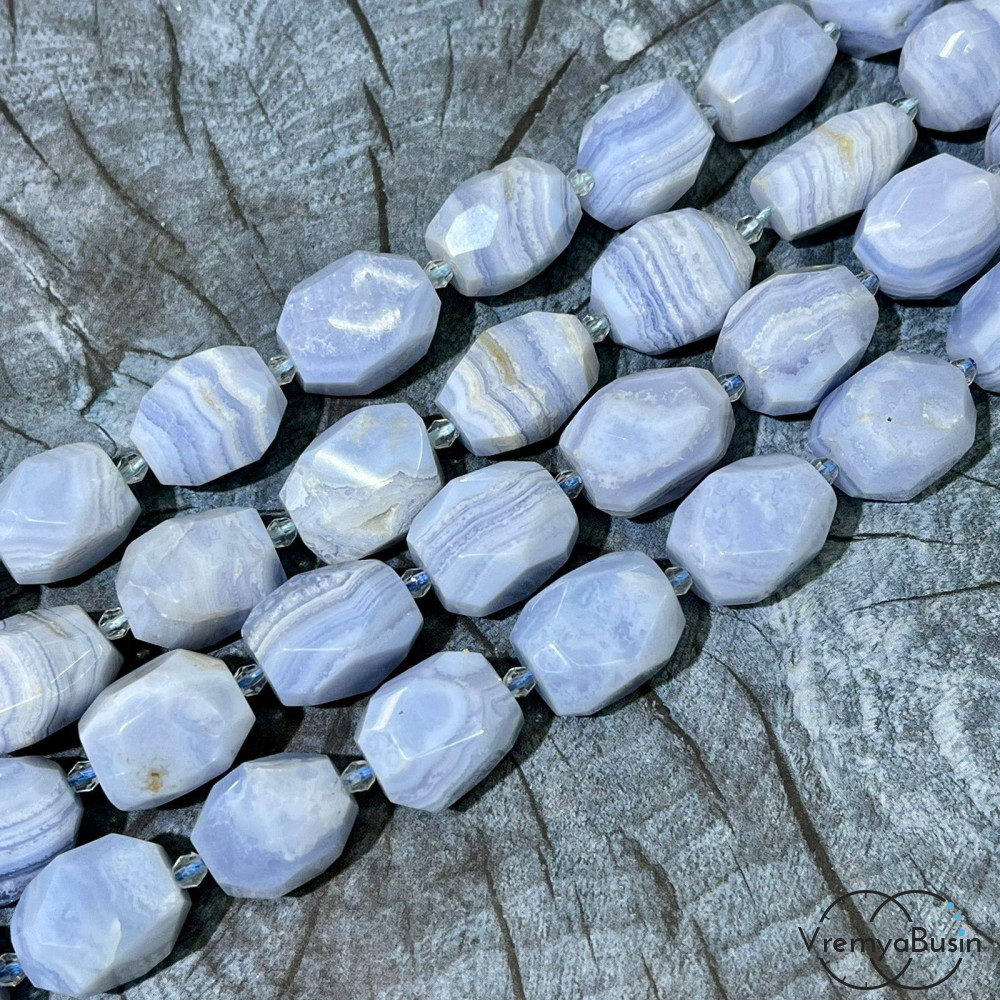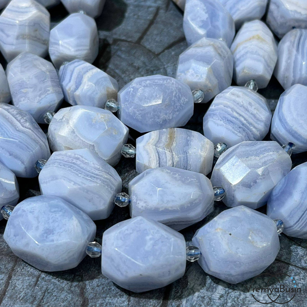 Сапфирин, натур. голубой агат, овальные бусины свободной огранки, ок. 20х16 мм (нить, ок. 16 шт.)