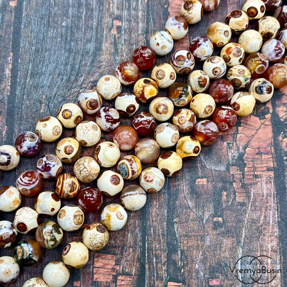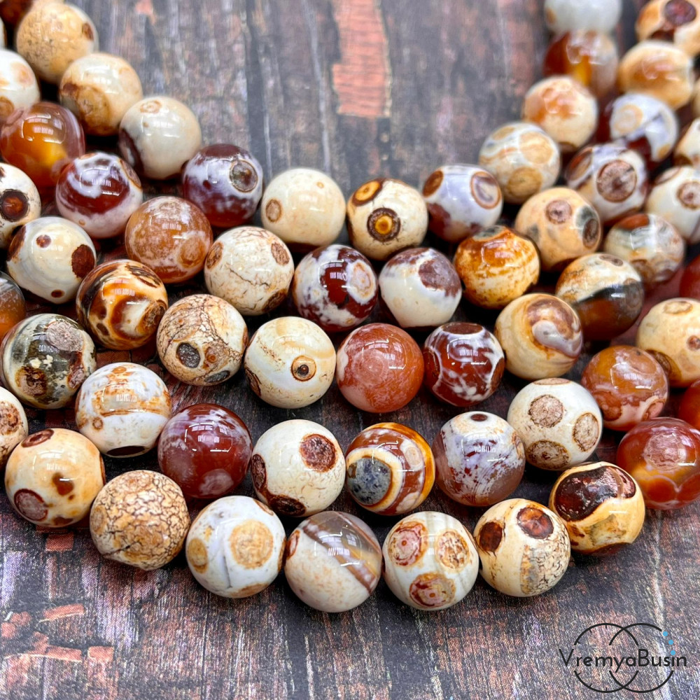 Черепаховый агат, шарик гладкий 10 мм (1/2 нити, ок. 19 шт.)