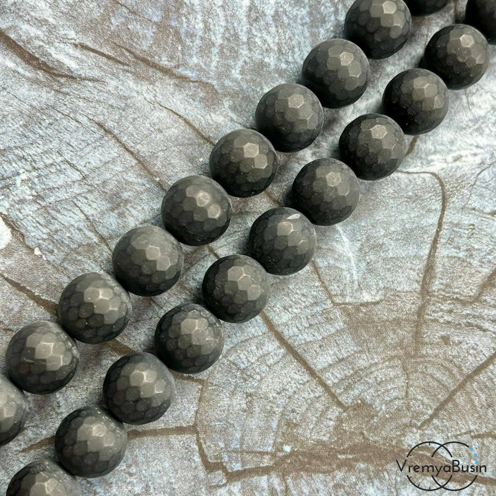 Черный агат матовый, шарик граненый 12 мм (нить, ок. 32 шт.)