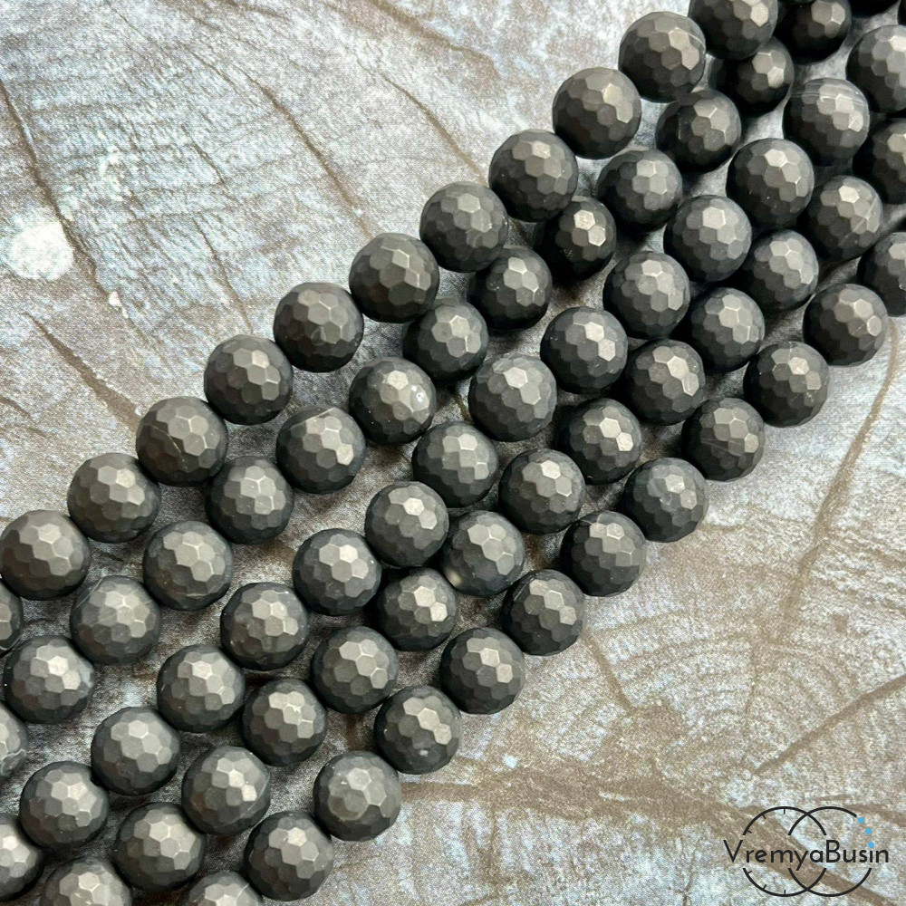 • Черный агат матовый, шарик граненый 8 мм (нить, ок. 48 шт.)