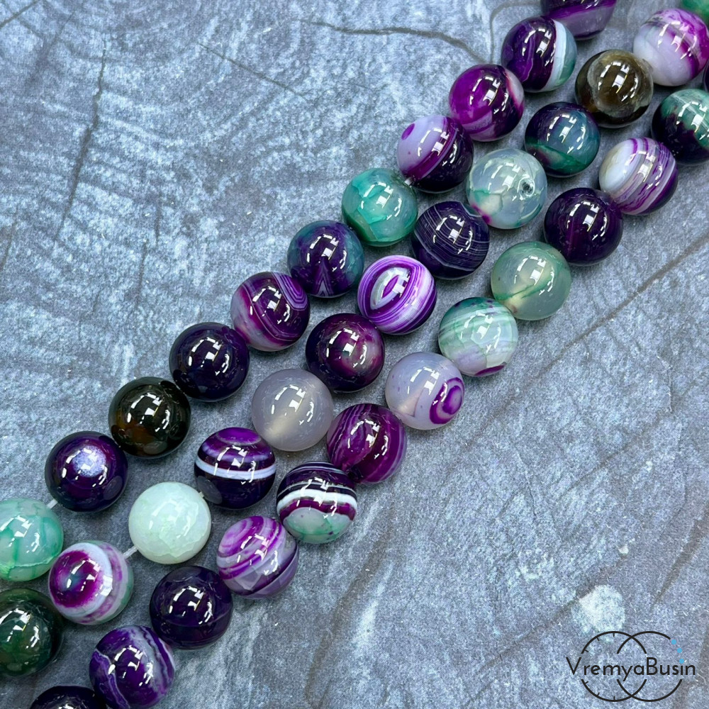 Оникс-агат, шарик гладкий 10 мм (нить, ок. 38 шт.)