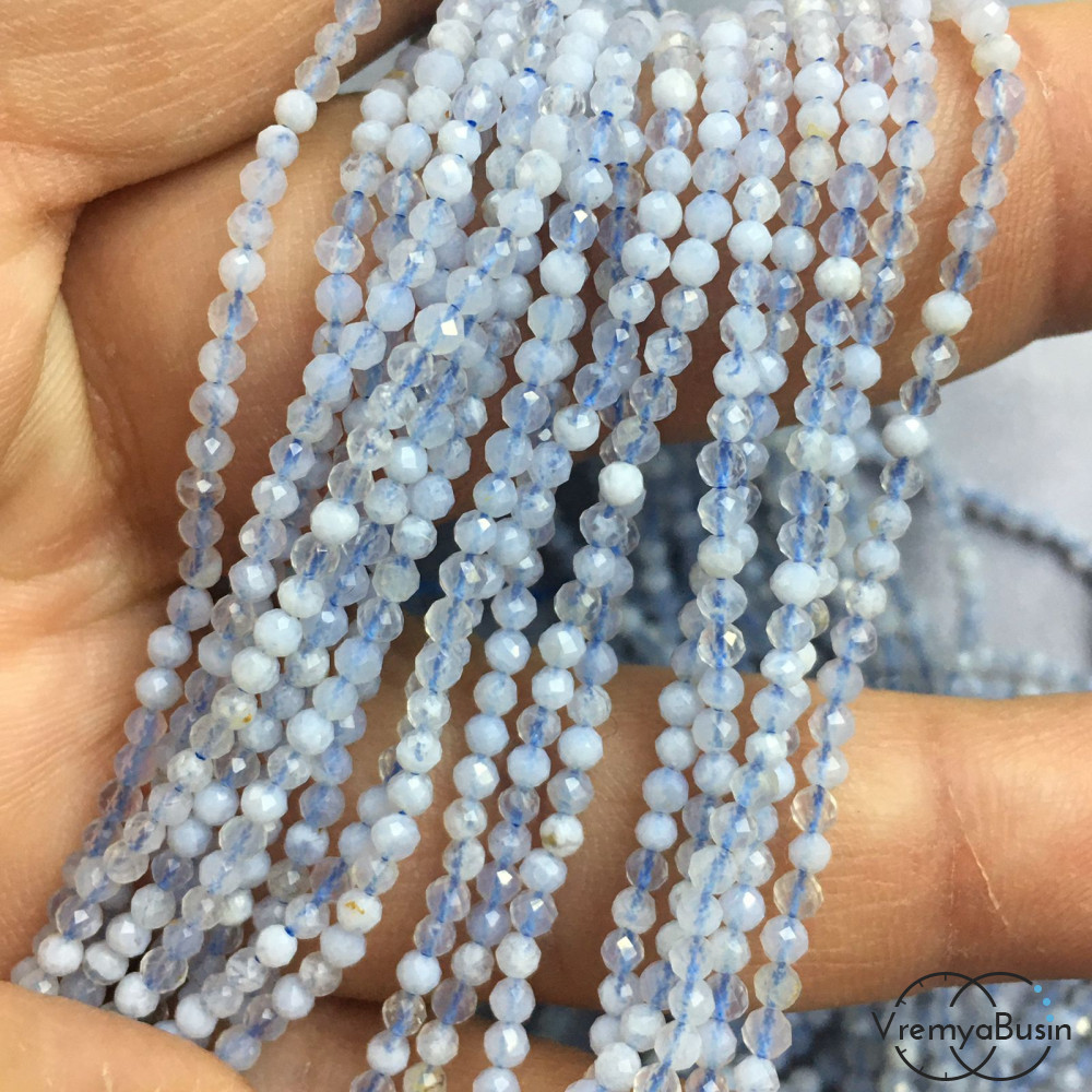 Сапфирин - голубой агат, самые мелкие граненые бусины из камня, 2 мм ААА качество (нить, ок. 40 см.)