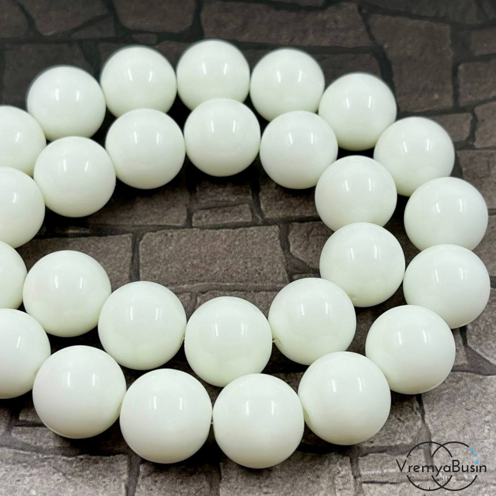 Агат белый имит., гладкий шарик, 14 мм (нить, ок. 28 шт.)