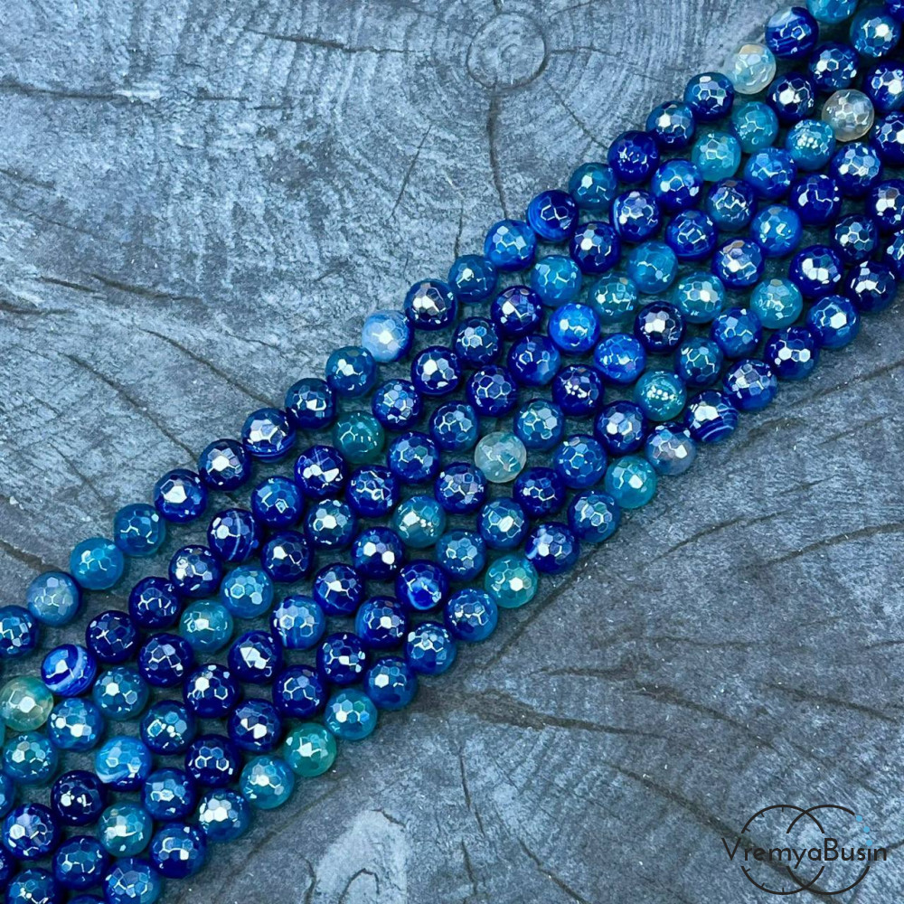 • Агат тонир., шарик граненый 6 мм, цв.   синий   (нить, ок. 65 шт.)