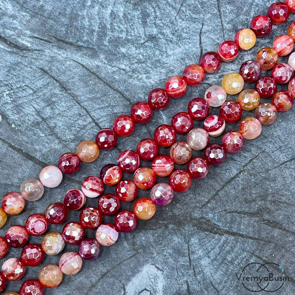 Агат тонир., шарик граненый 8 мм, цв. красный (нить, ок. 48 шт.)