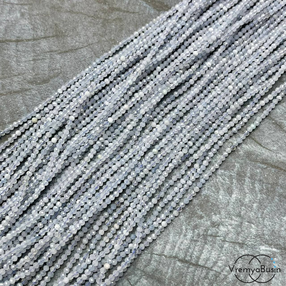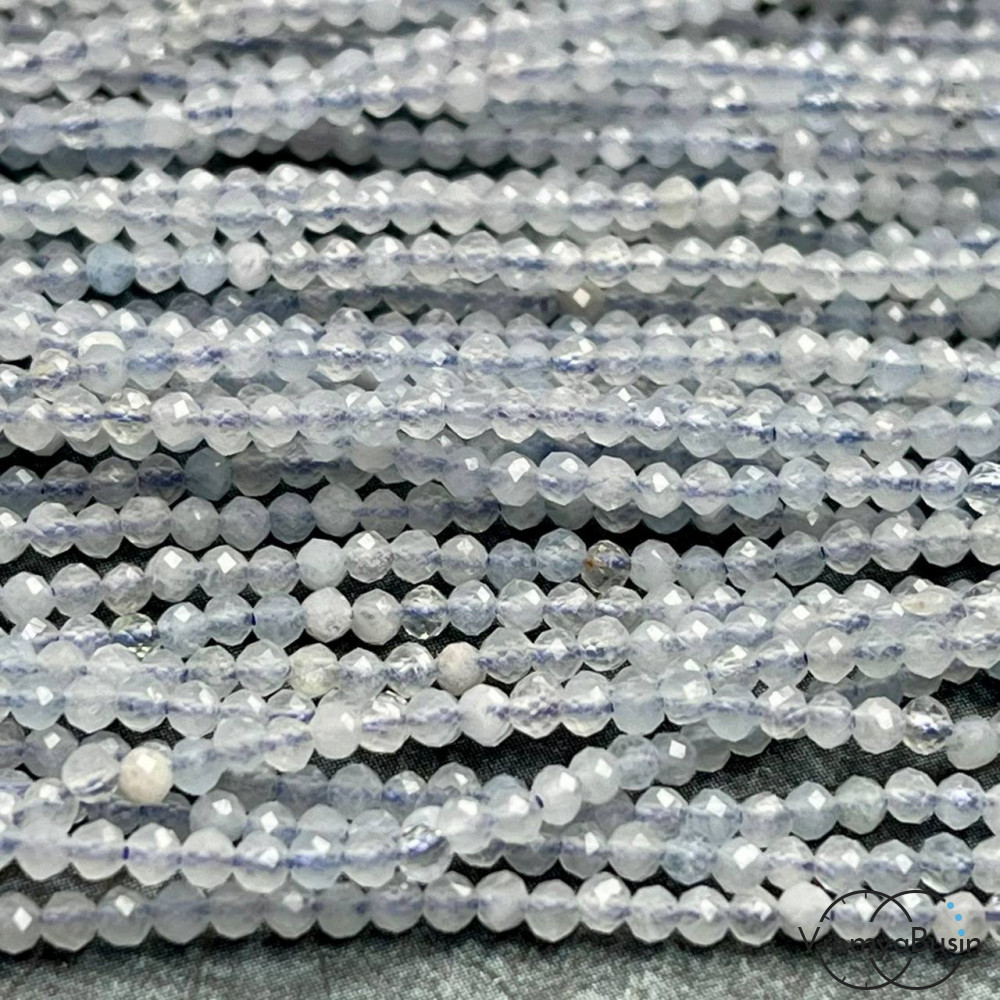 Аквамарин, самые мелкие граненые бусины, шарик 2 мм ААА качество (нить, ок. 40 см.)