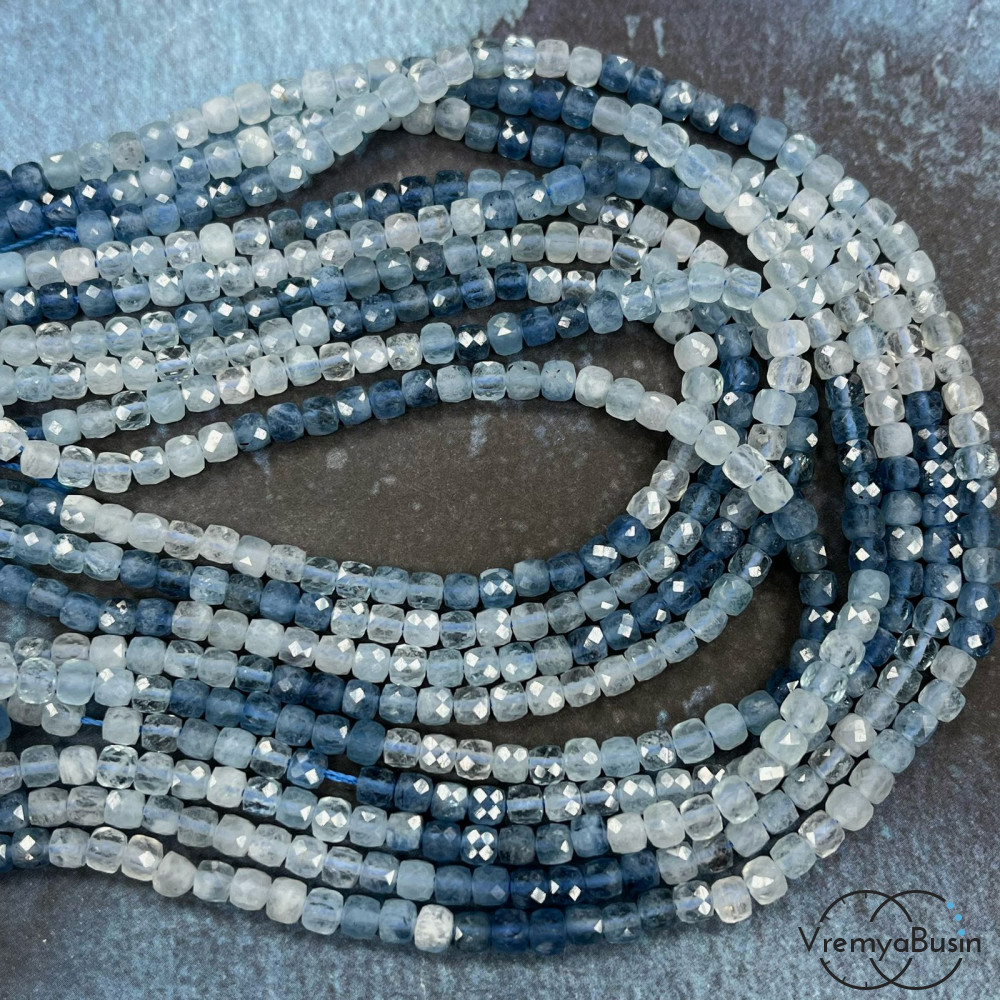 Аквамарин, кубик с ювелирной огранкой, 4х4 мм (нить, ок. 85 шт.)
