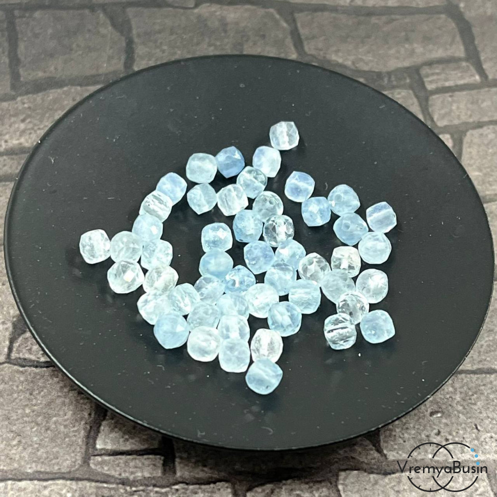 • Аквамарин, кубик с ювелирной огранкой,   4х4    мм (упак. 10    шт.)