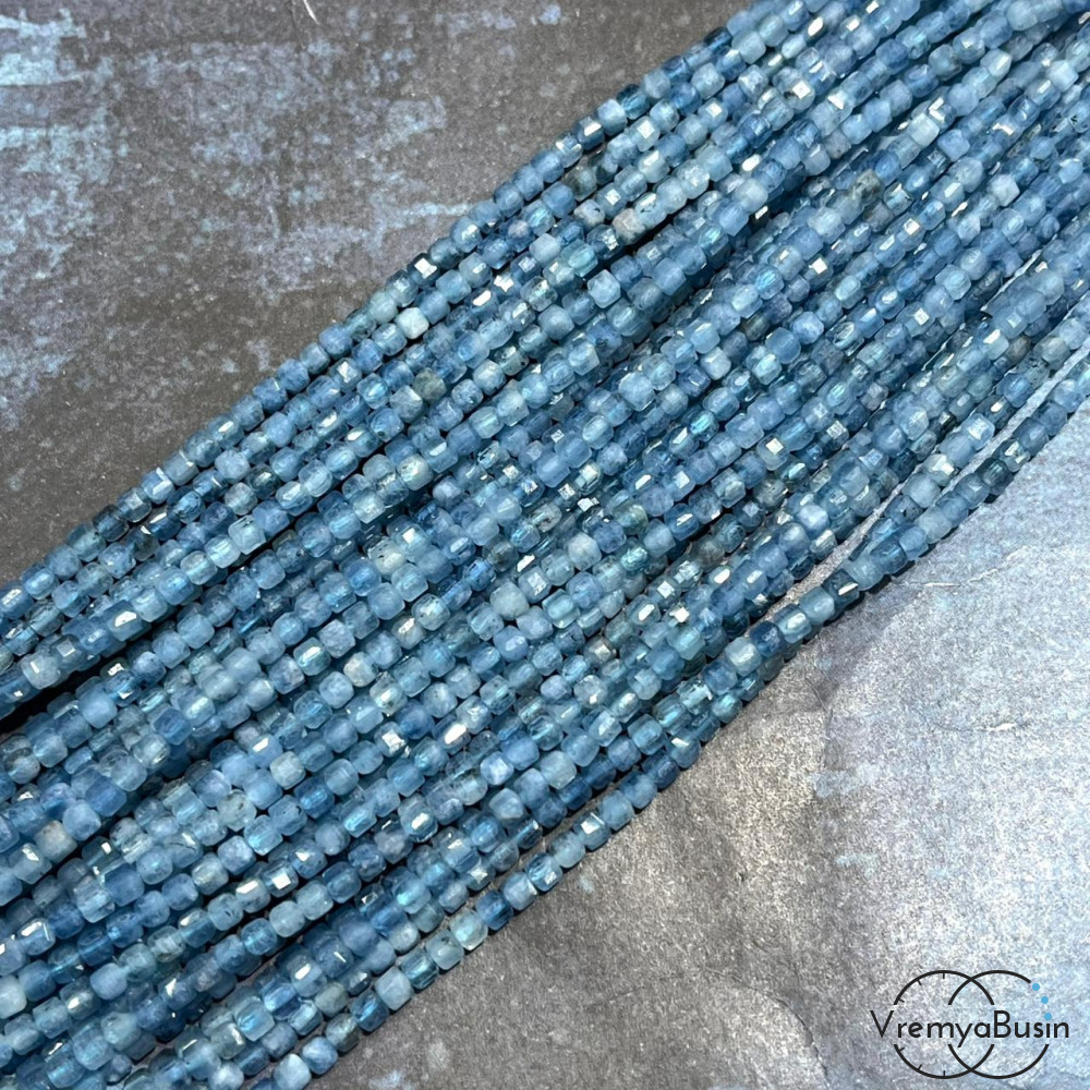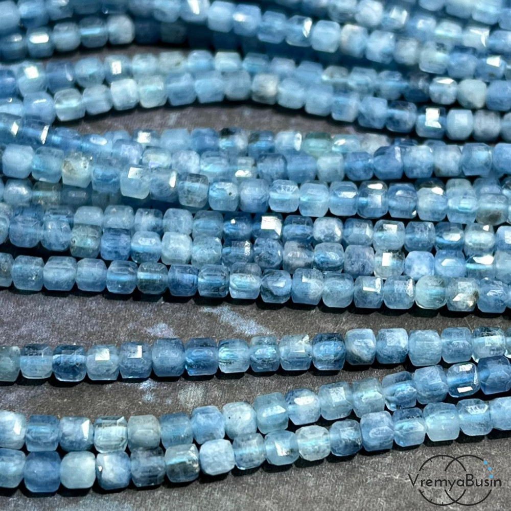 Аквамарин, мелкие кубики с ювелирной огранкой, 3 мм (нить, ок. 40 см.)