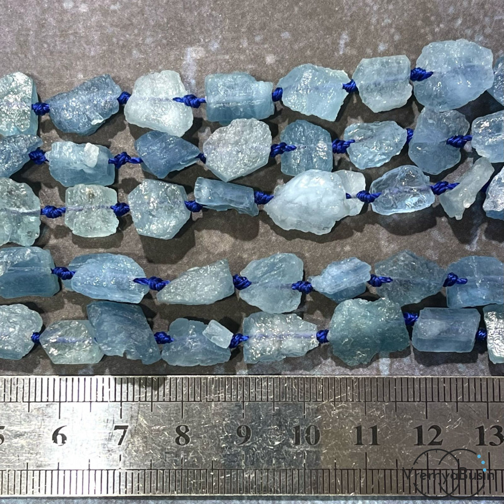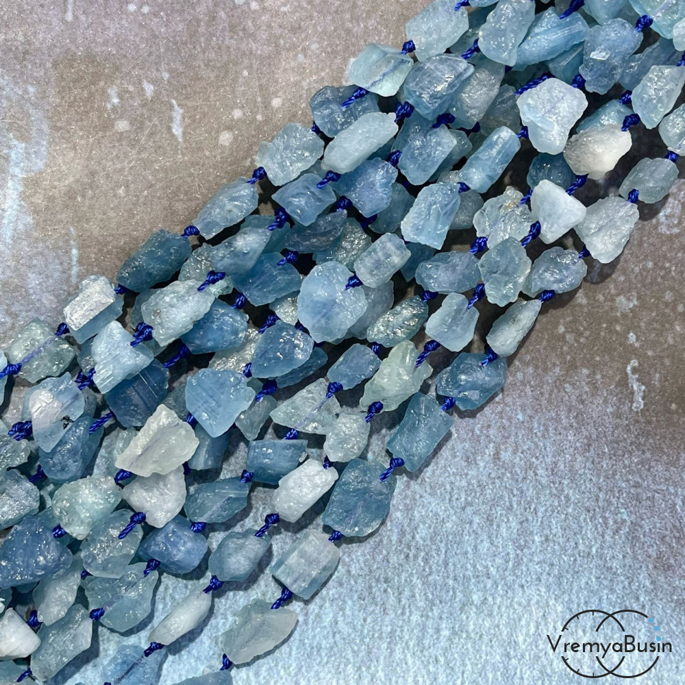Аквамарин, мелкие кусочки необработанного камня (нить, ок. 30 шт.)