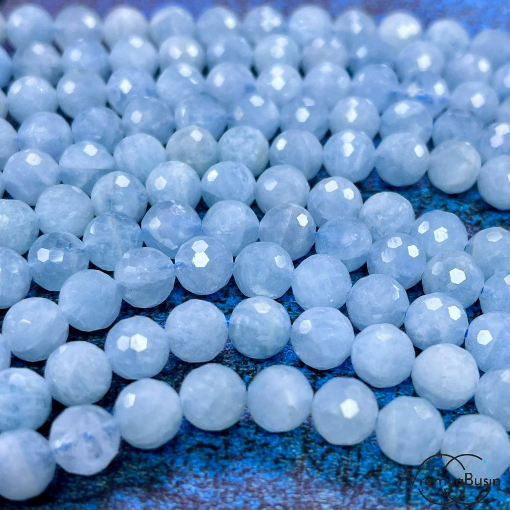 Аквамарин, шарик ок. 7 мм с ювелирной огранкой (1/2 нити, ок. 27 шт.)