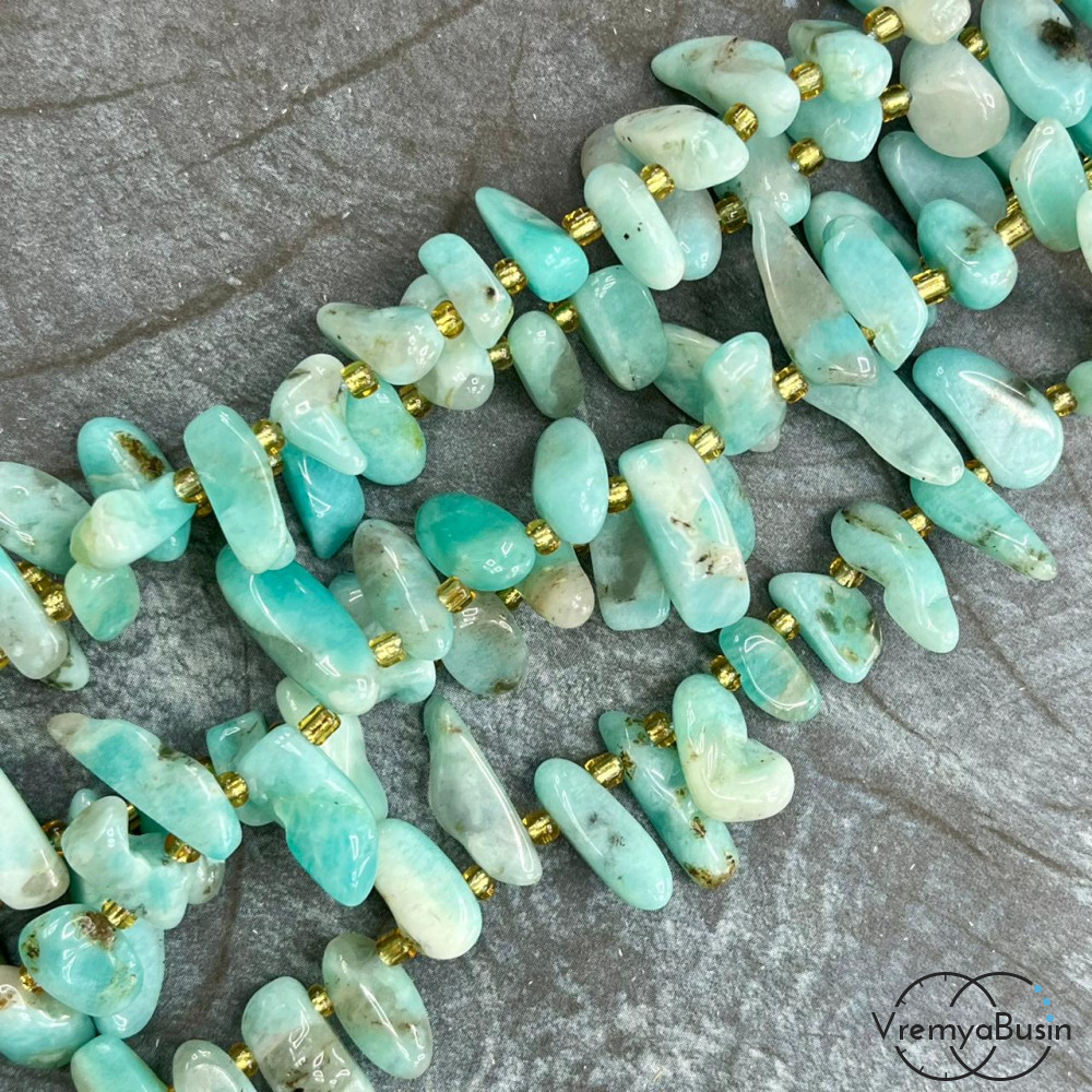Амазонит, галтовка палочки, ок. 10х15-20 мм (нить, ок. 55 шт.)