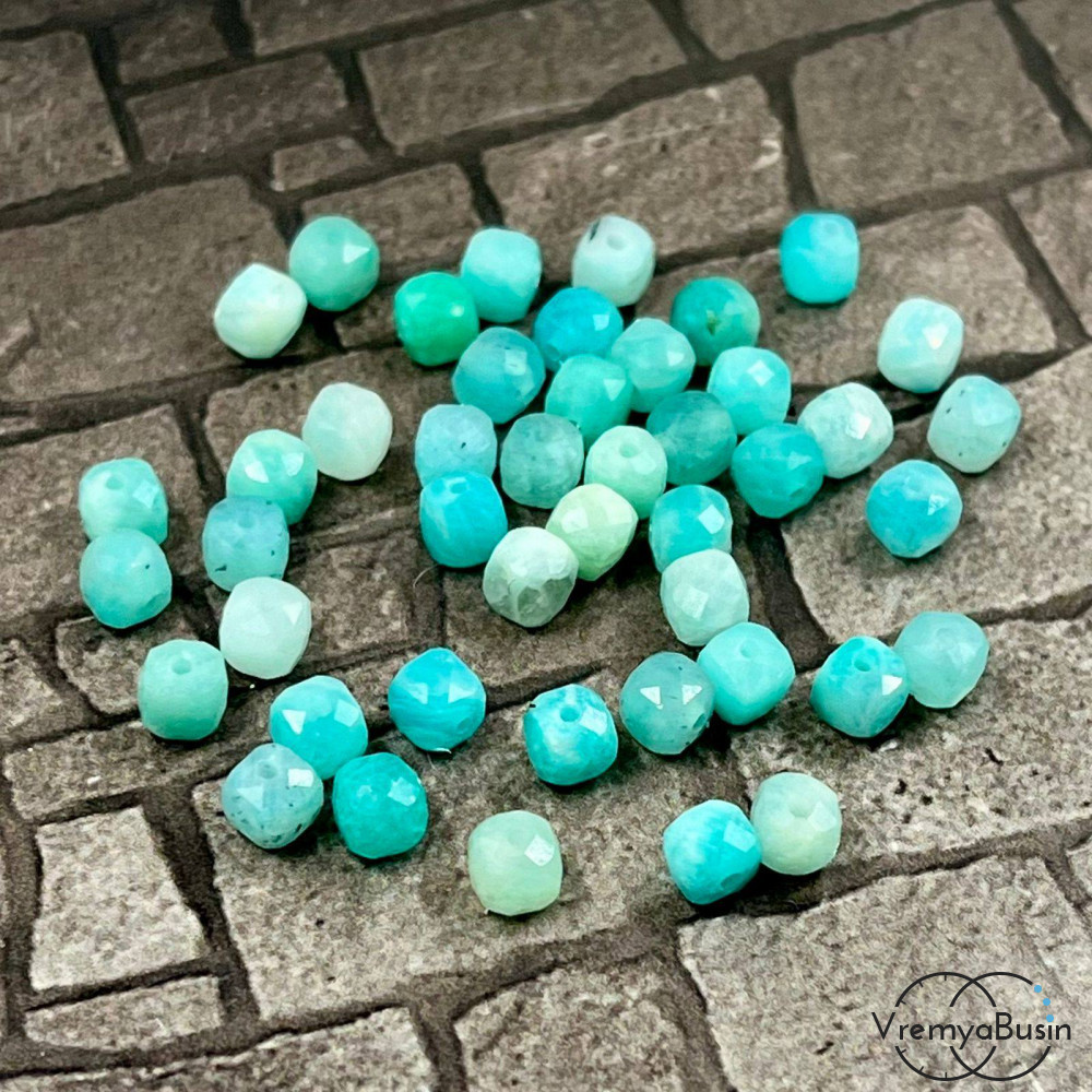 • Амазонит, кубик с ювелирной огранкой, 4х4 мм (упак. 10 шт.)