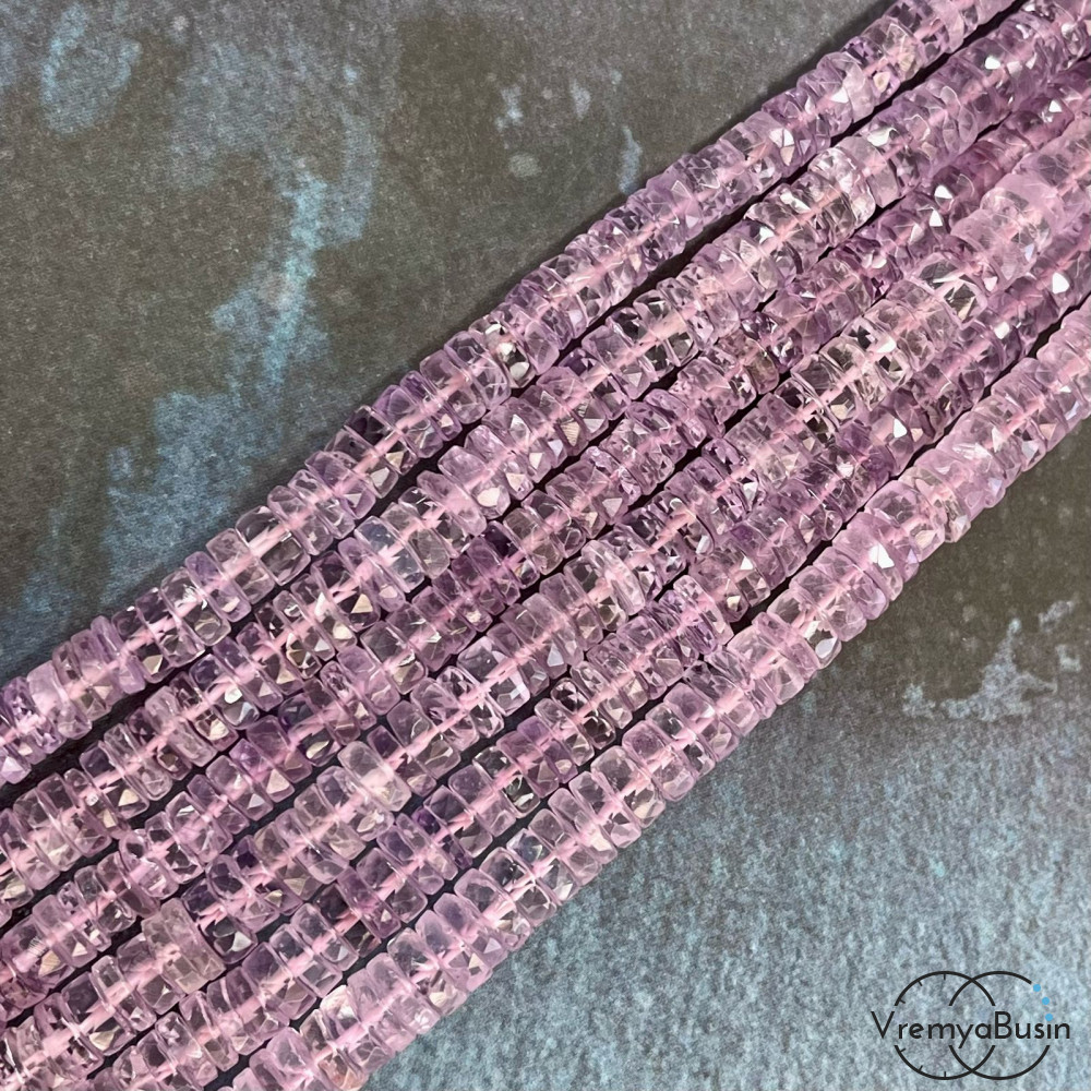 Аметист лавандовый, бусины чипсы граненые, 6-7 мм (1/2 нити, ок. 80 шт.)