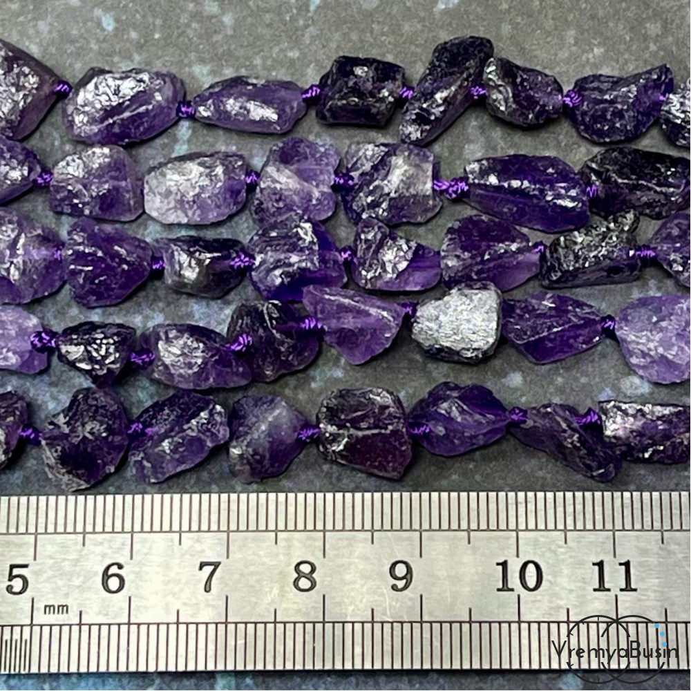 Аметист, мелкие кусочки необработанного камня (нить, ок. 37 шт.)