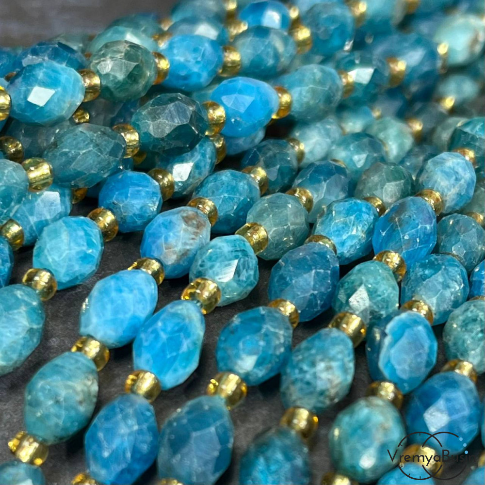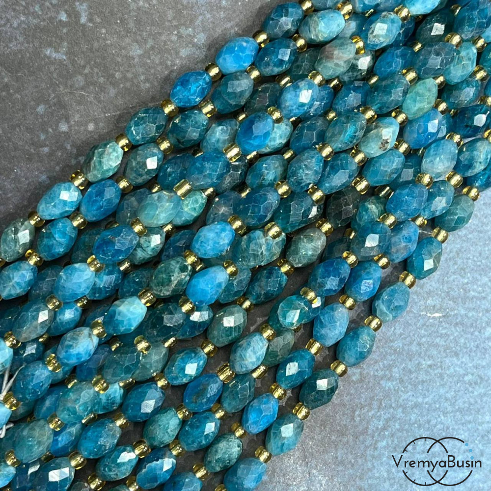 Апатит, бочонок с ювелирной огранкой, ок. 6х8 мм (нить, ок. 38 шт.)